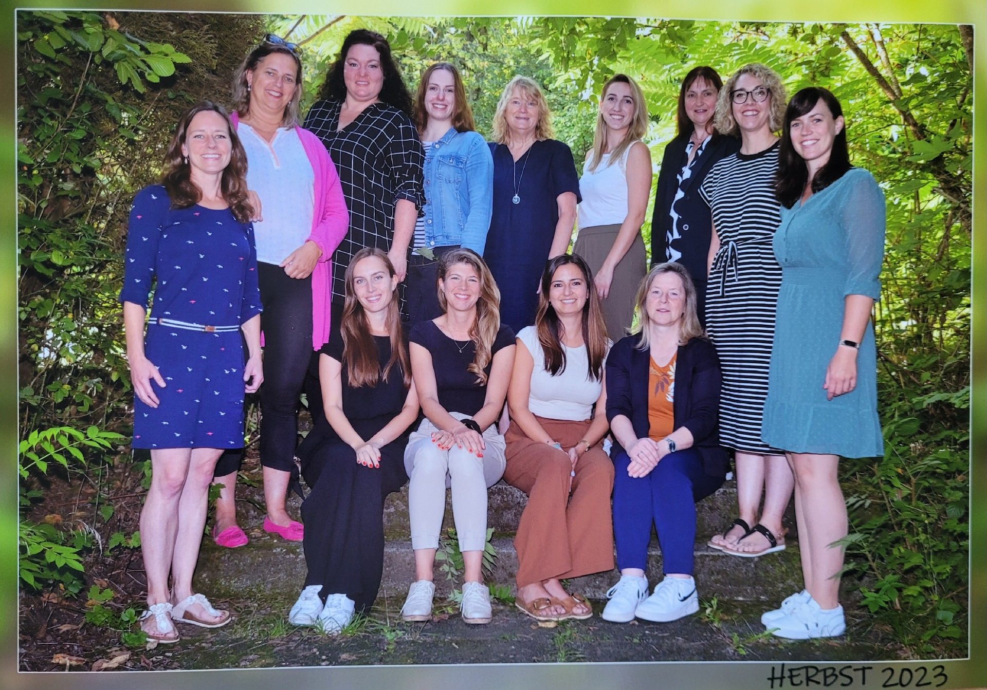 Stehend (v.l.n.r.): Frau Zinnkann, Frau Becker, Frau Schmuck, Frau Kübler, Frau Dechert, Frau Winterberg, Frau Römer, Frau Sprenger, Frau Russlies, Frau Mengler