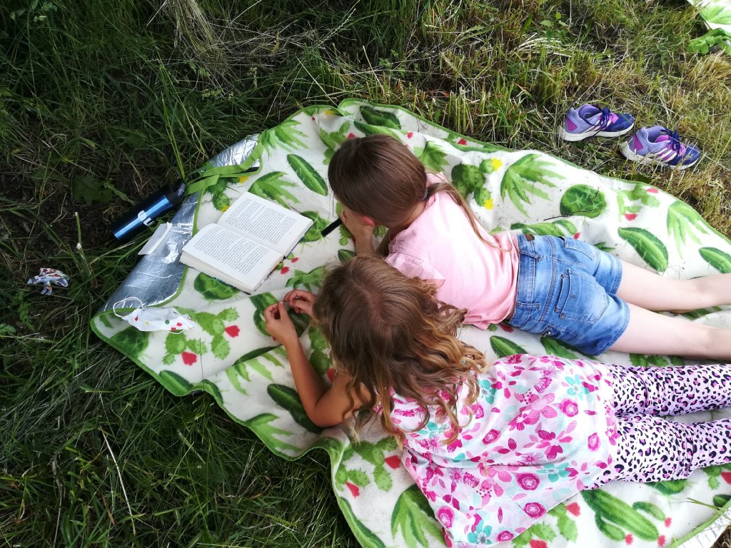 Zurückgezogen auf die schattigen Decken nutzten ein paar Kinder die Stille in der Natur um zu lesen oder sich einander vorzulesen.