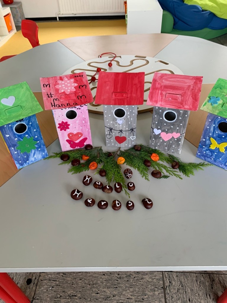 Wir basteln was das Zeug hält. Neben Herbst-Bastelmaterial wie Tonkarton in herbstlichen Farben in orange, rot, braun oder Regenbogenpapier dürfen herbstliche Accessoires zum richtigen Basteln für den Herbst auf keinen Fall fehlen. Ob große Ahornblätter, Kastanien, Rehe, Eulen oder Pilze: Kleine Deko-Highlights geben der herbstlichen Bastelei die richtige Stimmung. In der Mittagsbetreuung haben wir uns vergangene Woche mit dem Basteln eines Nistkastens für die heimisches Vögel beschäftigt. Unsere kreativen Grundschulkids haben ihren Ideen freien Lauf gelassen und wunderschöne Nistkästen unter Anleitung der Betreuungskraft Frau Helwig gebastelt. Mit vielen kreativen Ideen und Spaß am Basteln wurden aus den leeren Pappkartons im Handumdrehen einzigartige Nistkästen.