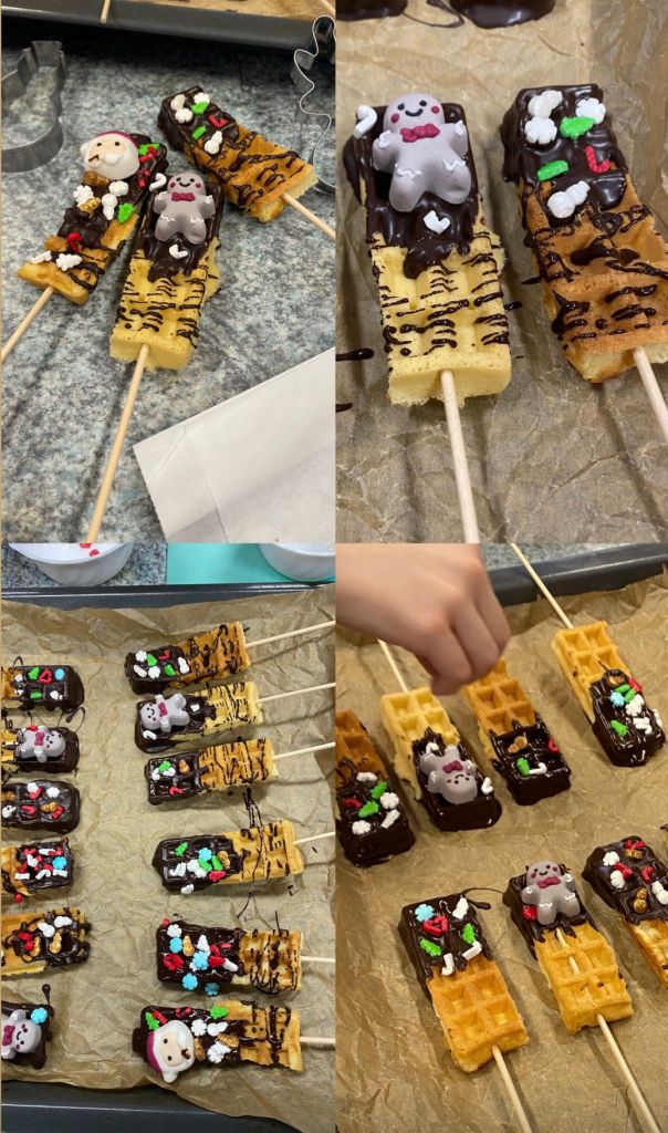 In der Vorweihnachtszeit wurden in der Mittagsbetreuung gemeinsam mit den Betreuungskräften Frau Losert und Frau Helwig in der Schulküche Leckereien gezaubert. Mit viel Freude entstanden Waffeln am Stiel, die mit Schokolade und bunten Streuseln liebevoll verziert wurden. Die Kinder durften ihre Waffeln mit nach Hause nehmen, weitere wurden an andere Betreuungskinder verteilt und sorgten für vorweihnachtliche Freude.