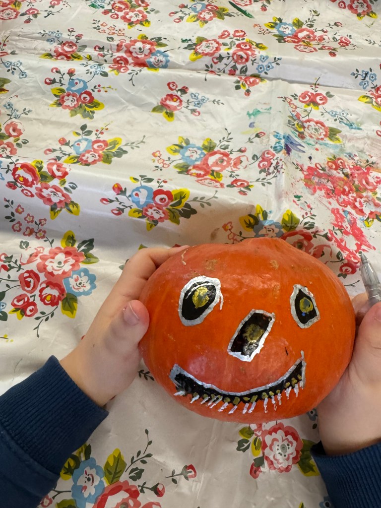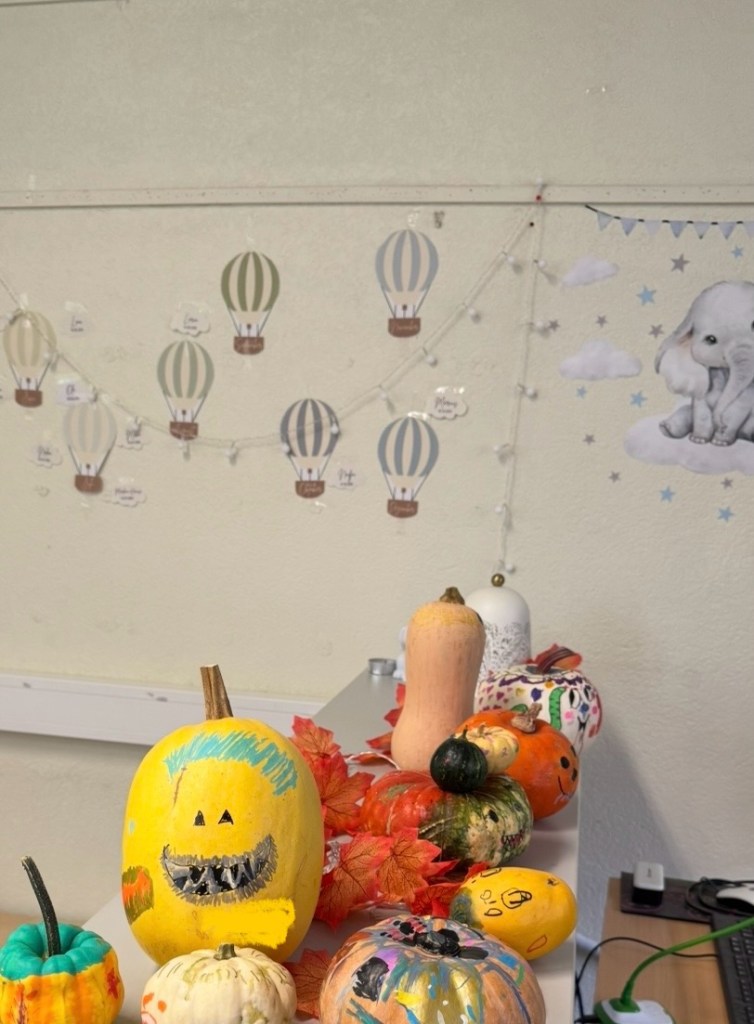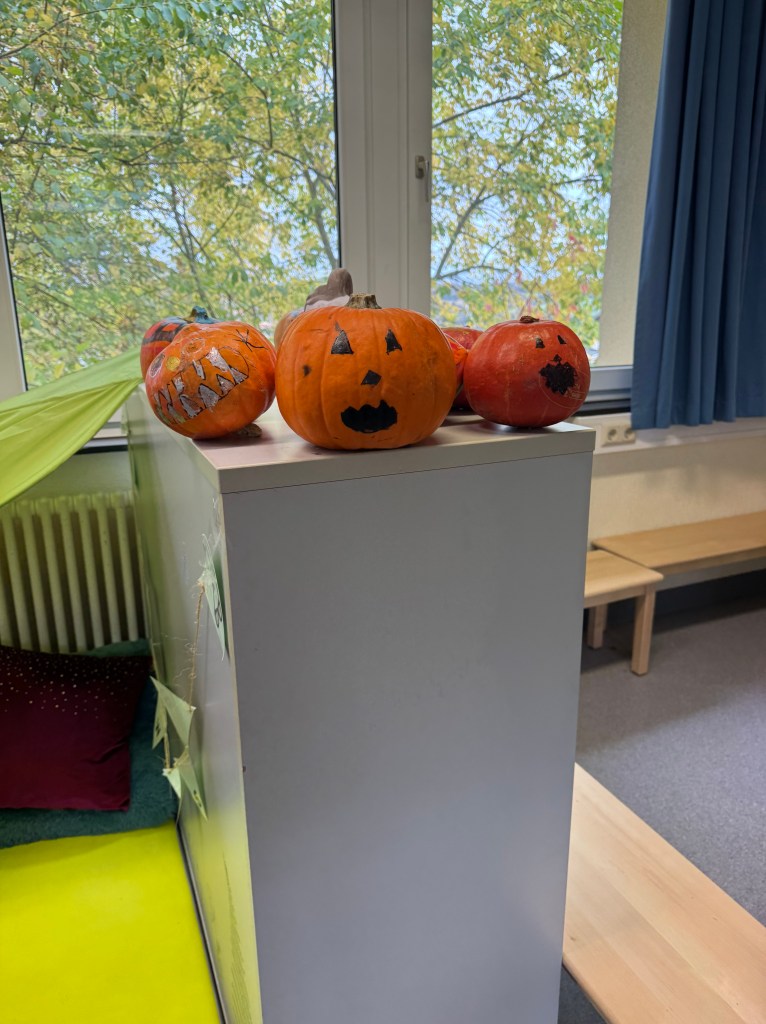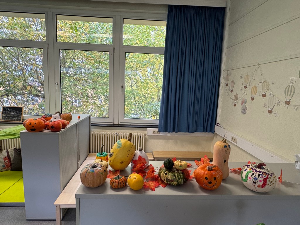 Am 24.10. haben wir einen wundervollen Kürbistag verbracht und konnten durch die Hilfe mehrerer Eltern viele tolle Dinge gestalten und backen. Es wurden Kürbismuffins, Plätzchen und Butternut-Kürbis mit Käse gebacken. Außerdem haben die Kinder Kürbisse und Teelichter sehr schön bemalt.