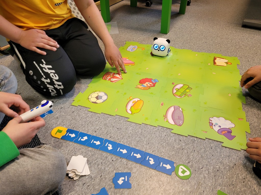Die Kinder bringen den Robotern bei sich auf selbst geplanten Strecken fortzubewegen, um ein gestecktes Ziel zu erreichen. Die ersten Stunden haben den Kindern schon sehr viel Freude bereitet und wir freuen uns auf viele weitere tolle Aha-Erlebnisse beim Programmieren!