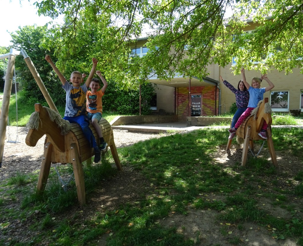 Der neue Vorstand des Fördervereins der Pestalozzischule e.V., der seit Ende des Jahres 2023 in neuer Besetzung agiert, hat sich in diesem Jahr schon sehr engagiert und sich für die Grundschule eingesetzt. So konnte zum einen das Außengelände der Schule endlich mit einem neuen Highlight für die Pausen versehen werden, das sich die Schülerinnen und Schüler im Rahmen eines Ideen-Wettbewerbs gewünscht hatten. Dank einer sehr großzügigen Spende der Firma Parker Hannifin GmbH in Mücke konnten zwei robuste und große Holzpferde angeschafft werden, die seit diesem Frühjahr den Schulhof der Grundschule bereichern.