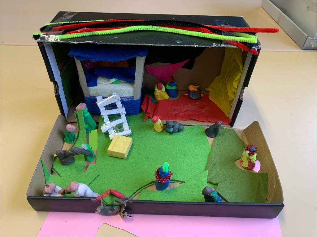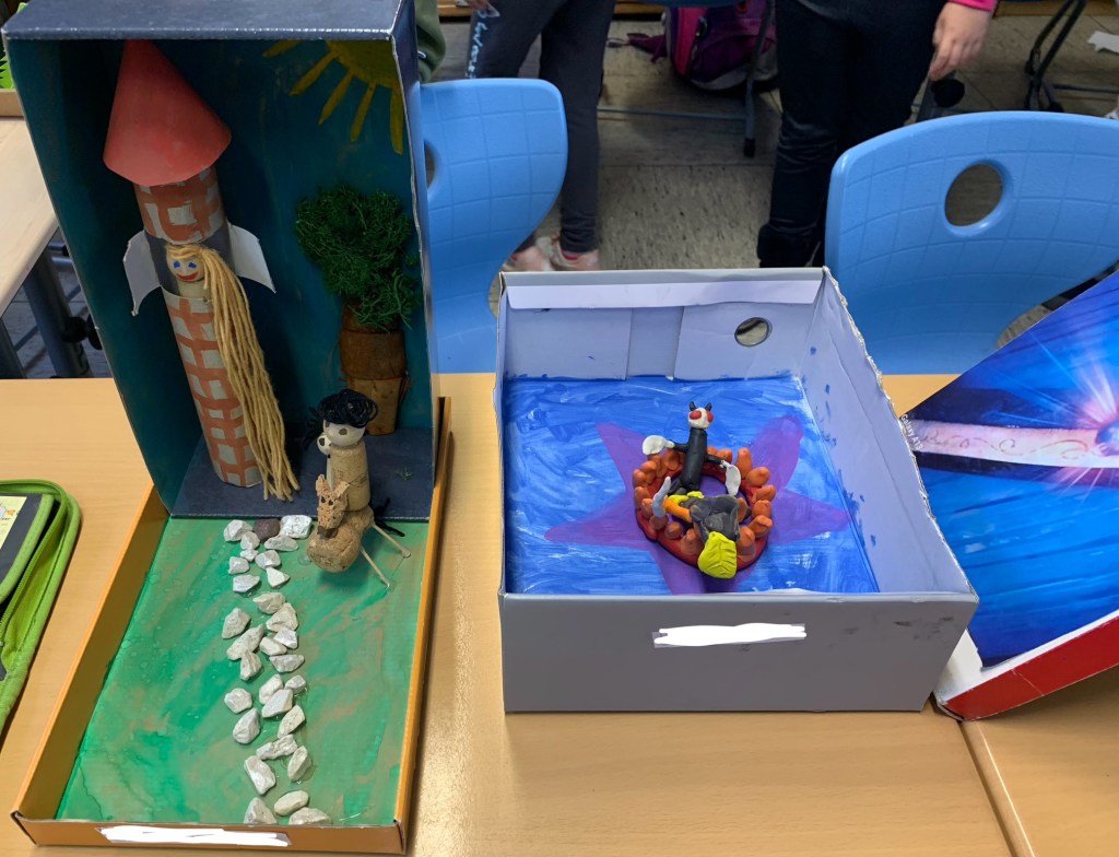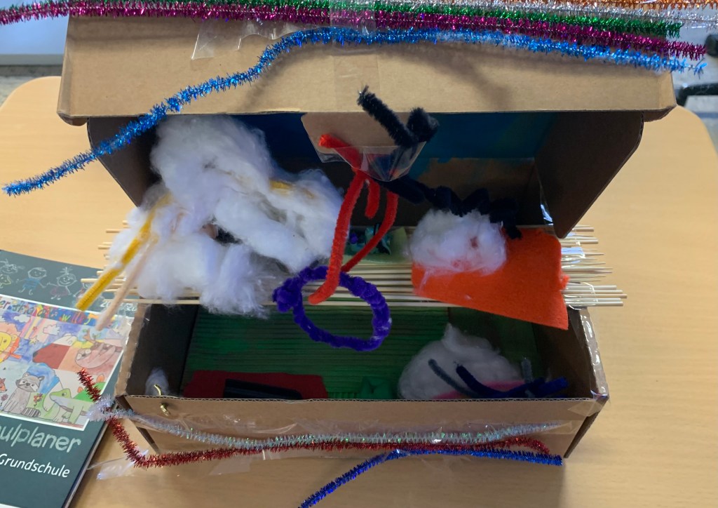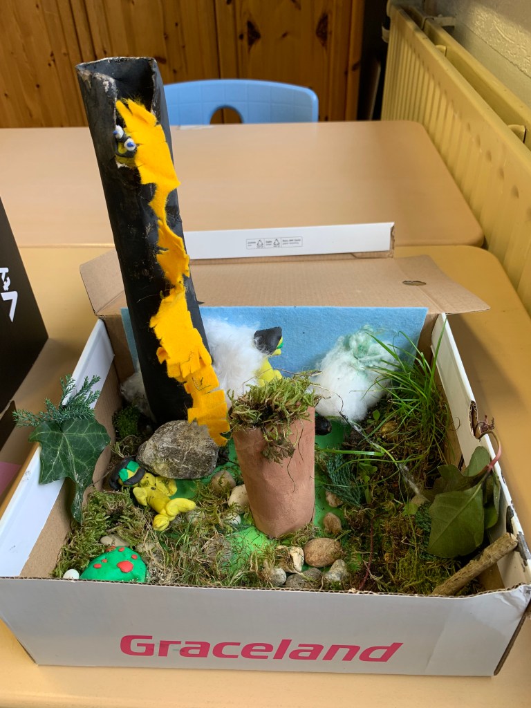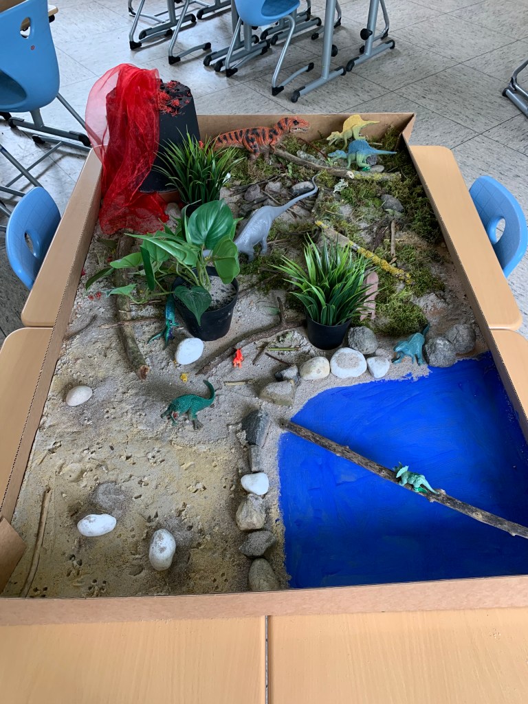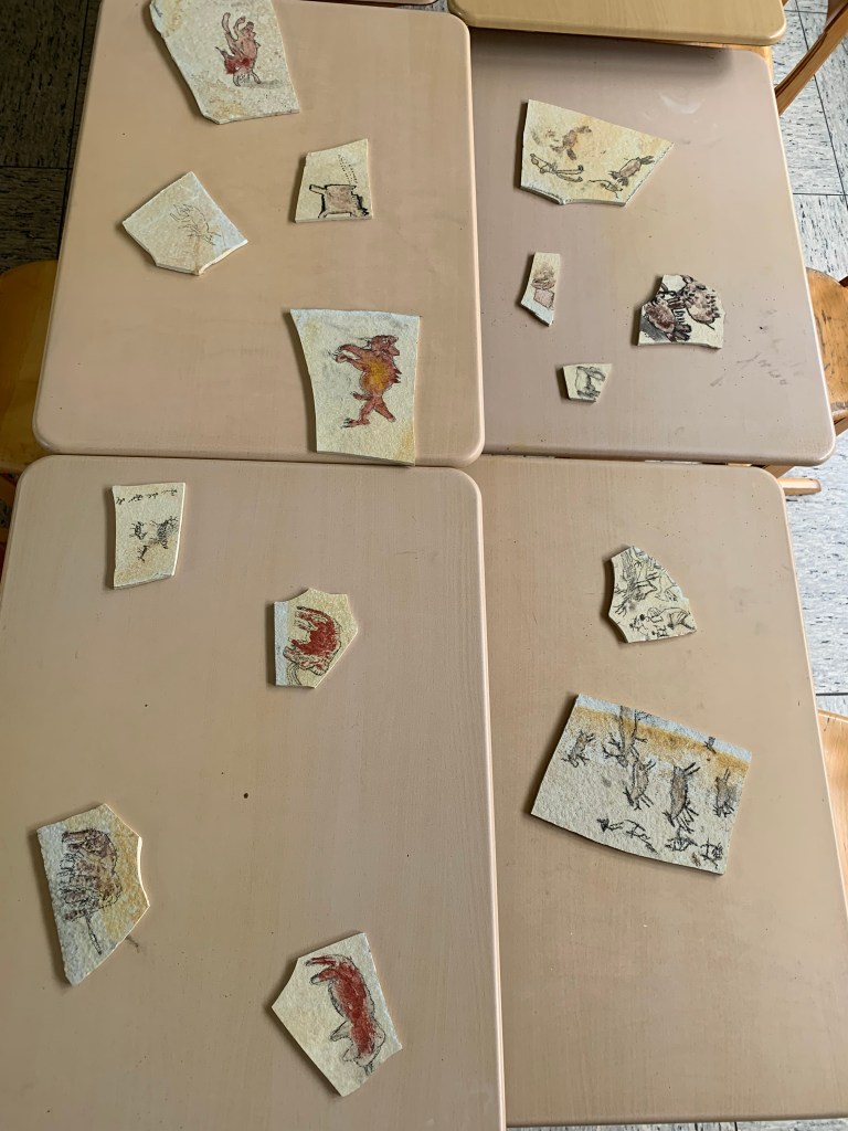 In der Projektwoche zum Thema „In einem Land vor unserer Zeit“ sind wir tief in die Geschichte eingetaucht. Wir haben unterschiedliche Dinos kennengelernt, ihre Fossilien ausgegraben und Landschaften gebaut, die die Dinos damals bewohnt haben. Im Senckenberg Museum konnten wir uns dann echte Dinoknochen anschauen. Fox Schlaufuchs und Polly Plapperschlange haben und mitgenommen in die Eiszeit, wo wir auf Mammuts gestoßen sind. Aber auch über unsere eigene Vergangenheit konnte wir viel erfahren. Wir durften uns in Höhlenmalerei probieren und unsere eigenen Tonschüsseln formen, die der Zeit der Neandertaler nachempfunden waren. Mit ganz viel Stolz haben wir am letzten Tag unseren Familien unsere Ergebnisse präsentiert.