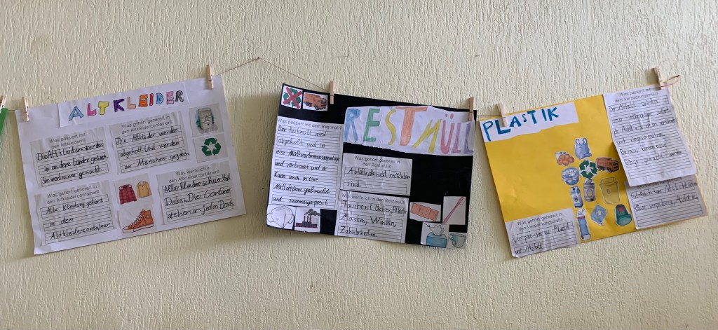 Kurz vor den Sommerferien haben wir uns zum Abschluss mit dem Thema Müll beschäftigt und sind Müllexperten geworden. Dabei haben wir gelernt, welche Müllsorten es gibt, welcher Müll in welche Tonne gehört und was mit dem Müll passiert, nachdem wir ihn entsorgt haben. Unser neues Wissen haben wir auf Plakaten festgehalten. Zum Abschluss haben wir Müll gesammelt und so unseren eigenen Schulhof von Müll befreit, denn wir haben gelernt, dass Müll nicht in die Umwelt gehört.