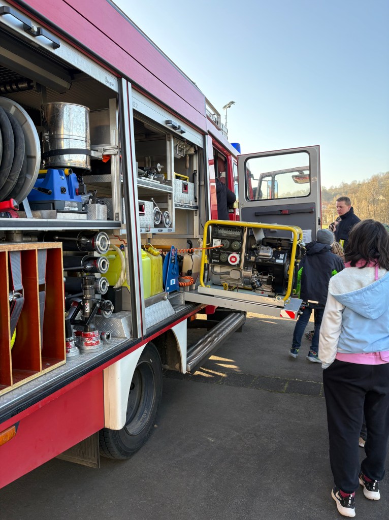 Die Brandschutzerziehung ist eines der wichtigsten Themen des Sachunterrichts. Vor den Osterferien haben wir uns dafür mit dem Thema Feuer beschäftigt. Wir haben das Verbrennungsdreieck durch verschiedene Experimente kennengelernt, haben überlegt, wie wir uns im Brandfall verhalten, und den Notruf bei der 112 geübt. Dabei durfte ein Besuch bei der Feuerwehr natürlich nicht fehlen. Während wir im Unterricht bereits die Aufgabenbereiche der Feuerwehr kennengelernt haben, konnten wir uns vor Ort ansehen, wie und mit welchen Hilfsmitteln die Feuerwehr arbeitet. Einen großen Dank an die Feuerwehr in Nieder-Gemünden.