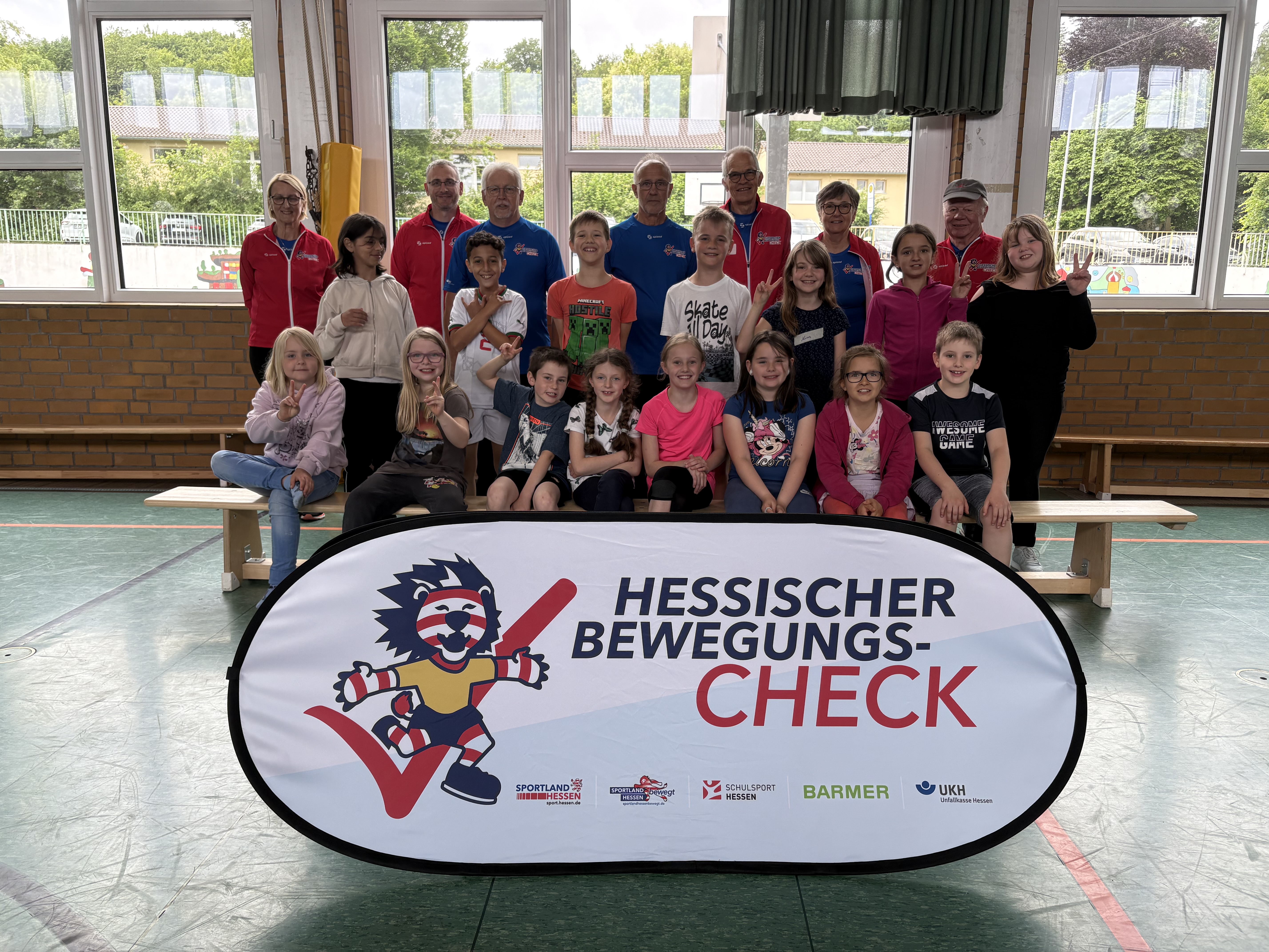 Am Ende der 3. Klasse haben wir am Hessischen Bewegungscheck teilgenommen. Hier konnten wir zeigen, was wir können, und überdurchschnittliche Leistungen erbringen. Darauf sind wir sehr stolz. Einen großen Dank an den Sportkreis Vogelsberg e. V. für die tolle Organisation.