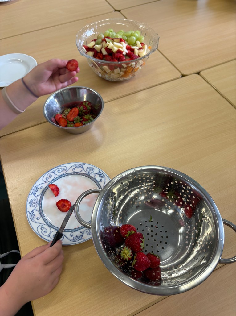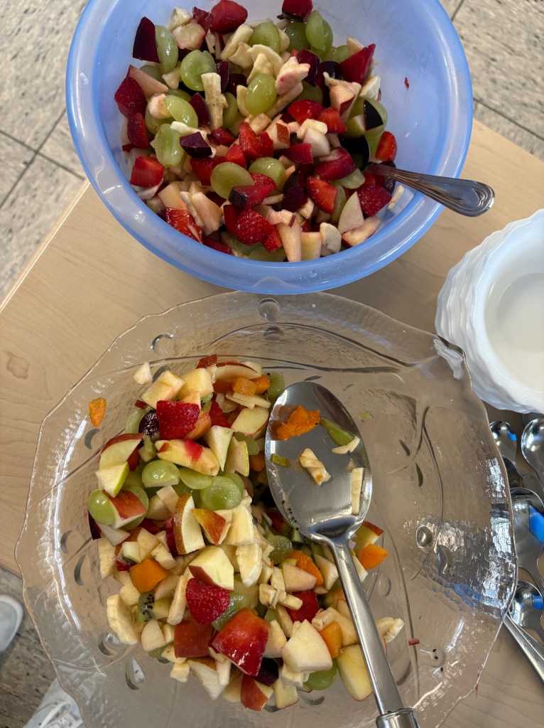 Als Abschluss der Einheit „fruits“ in Englisch haben wir vor den Sommerferien gemeinsam einen leckeren Obstsalat gemacht.