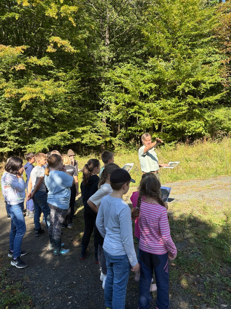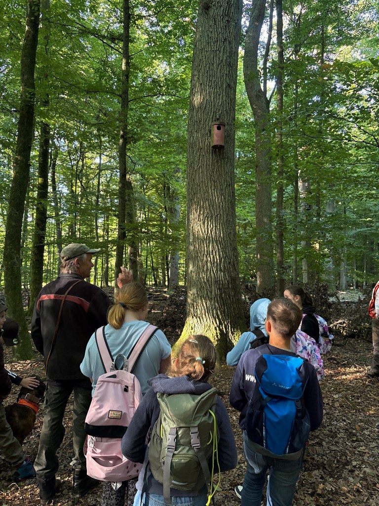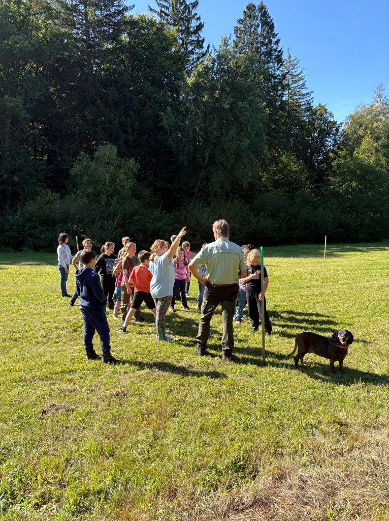 Passend zu unserem aktuellen Sachunterrichtsthema haben wir uns für einen Schultag in den Wald begeben. In Begleitung eines Försters konnten wir im Naturschutzgebiet viele Laub- und Nadelbäume entdecken, die wir im Unterricht kennengelernt haben. Wir konnten aber auch neue Bäume kennenlerne, wie zum Beispiel die amerikanische Douglasie. Neben der Douglasie konnten wir auch neue Waldtiere, wie zum Beispiel den Schwarzstorch, kennenlernen. Wir haben erfahren, dass ein gelbes H auf einer Rinde für Habitat steht und einen Baum kennzeichnet, der ein Zuhause für Tiere bietet. Das Wort Habitat wird uns besonders in Erinnerung bleiben. Am meisten Spaß haben uns die vielen Spiele gemacht, die wir im Wald gespielt haben. Wir bedanken uns, vor allem bei Frau Braun und Herrn Schleich, für die Organisation dieses tollen Tages.