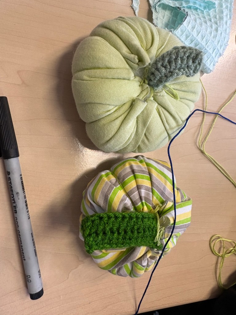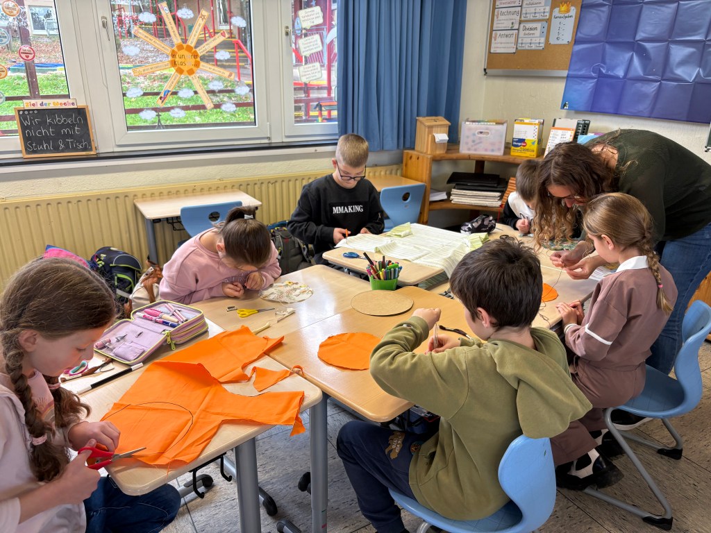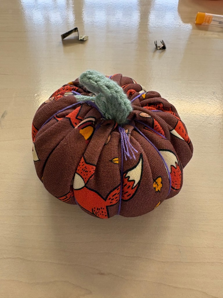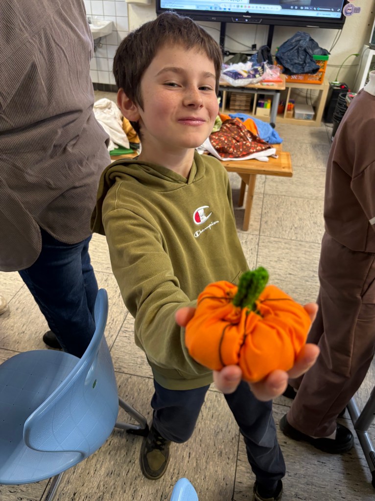 Am Kürbistag haben wir Kürbisse aus Stoffresten genäht. Dabei hatten wir Unterstützung aus der Elternschaft. Die Ergebnisse sind toll geworden.